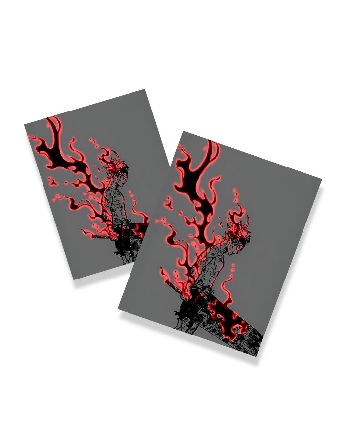 Asta’s demon power ignites in this intense black-and-red silhouette-style art. Flames roar around his body, while he holds his massive demon-slayer sword. A fiery tribute to raw willpower and magical defiance. This poster is a perfect centerpiece for Black Clover fans who live for energy, contrast, and grit.