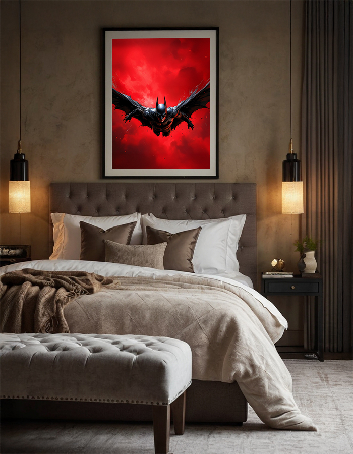 Immerse yourself in the gritty atmosphere of Gotham with this stunning Batman wall art. Set in a rain-drenched cityscape, this design captures the Dark Knight standing vigil—forever watchful, eternally resolute. A cinematic tribute to Batman’s mythos, this piece is ideal for fans who love the dark, brooding tone of his world.