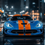 Blue & Orange Dodge Viper – Rainy Night Street Poster