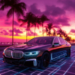 This BMW 7 Series poster is an electrifying fusion of luxury and modern neon aesthetics. With its sharp, clean lines and bold neon grid background, it represents the perfect blend of sophistication and speed. Ideal for fans of high-end cars and tech-inspired art, this poster will make a statement in any room.