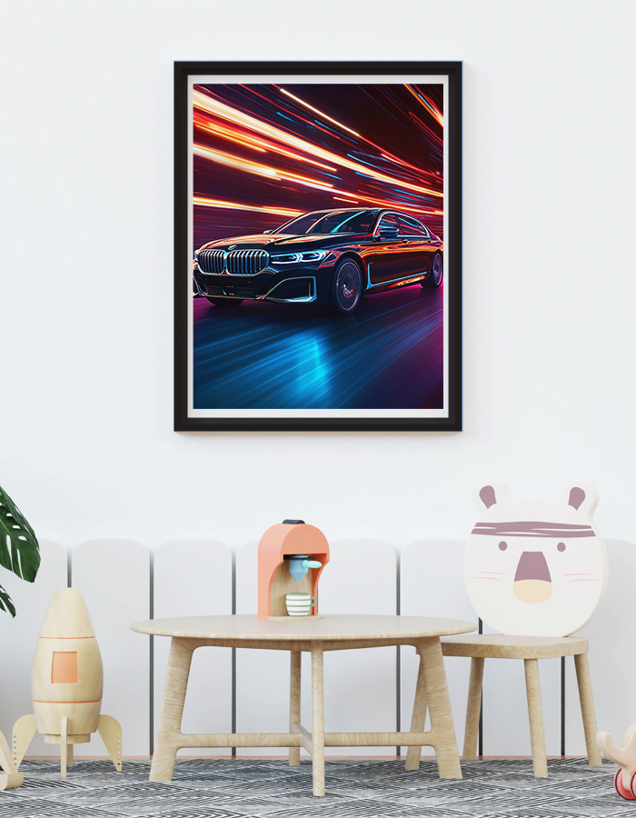 This BMW 7 Series poster combines elegance and cutting-edge neon lights, making it a striking addition to your space. With its sleek design and modern technology, this piece is perfect for fans of luxury cars, speed, and vibrant neon aesthetics.