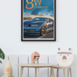Feel the rush of street racing with this Bugatti Chiron print, set against a backdrop of neon-lit city streets. The power and speed are palpable, making this piece a must-have for fans of urban racing and elite automobiles.