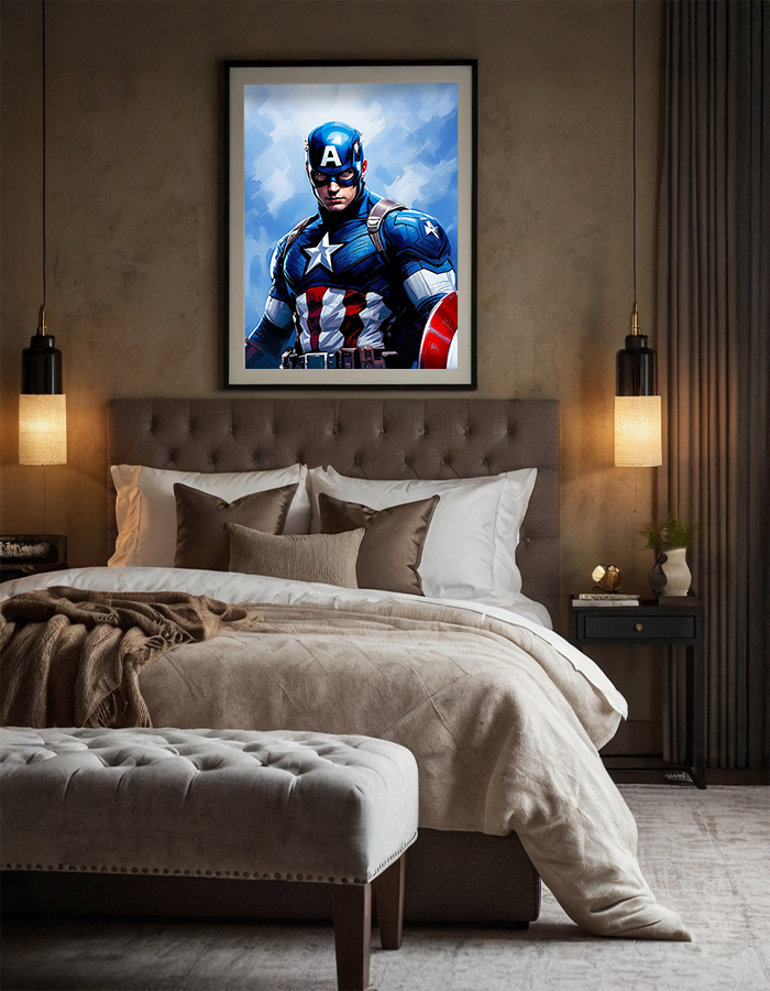 Show your admiration for one of the greatest superheroes with this stunning Captain America wall art. The artwork highlights Captain America’s iconic blue, red, and white suit along with his mighty shield, representing justice and freedom. Perfect for comic book fans, Marvel enthusiasts, or anyone who loves the essence of American heroism, this print is a must-have for your home or office. Display it proudly as a tribute to bravery and sacrifice.