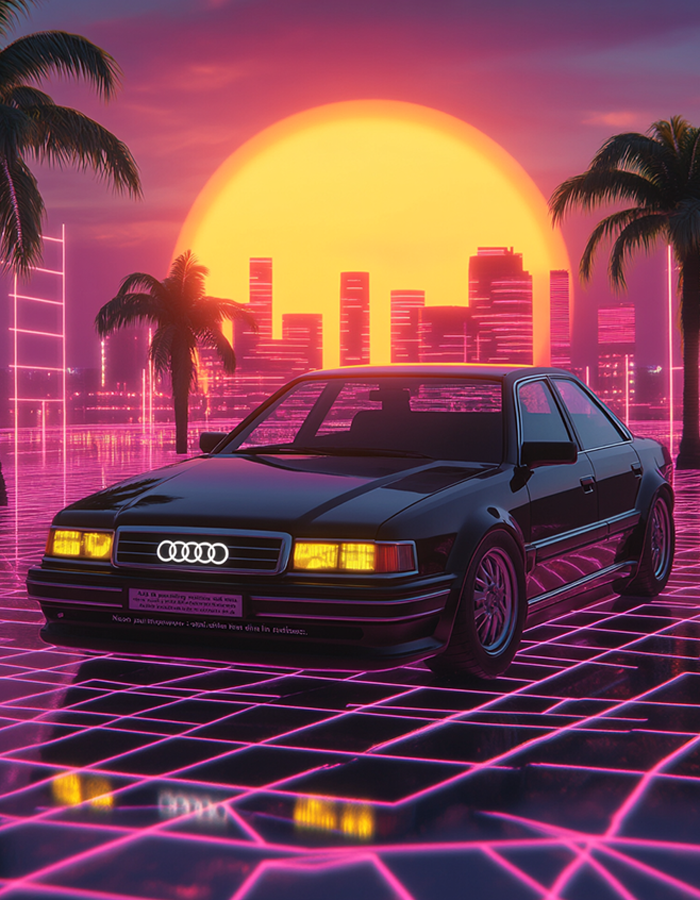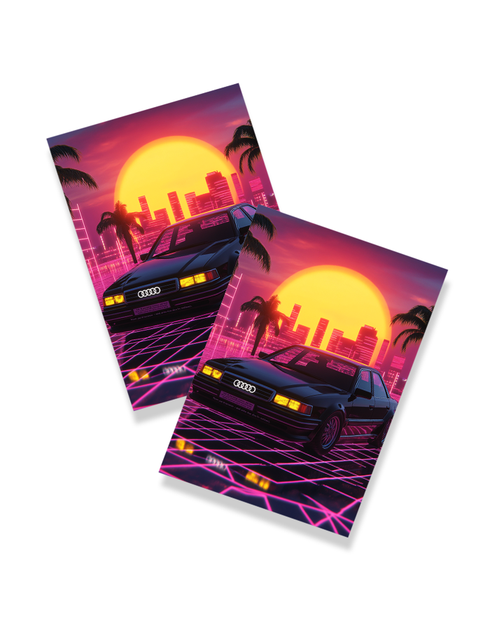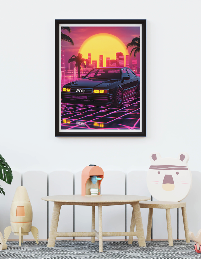 Retro Audi Neon Sunset – 80s Style Car Poster Art Price range: ₹29.00 through ₹799.00