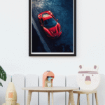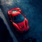 Capture the thrill of speed from above with this dramatic top-down Ferrari print. The contrast between the asphalt and crimson curves highlights a sense of movement and dominance. Perfect for fans of motorsport, aerial photography, and elite automotive design.