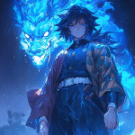 Backed by a roaring blue dragon forged of water and spirit, Giyu stands serene yet unyielding in the rain. This stunning piece captures the essence of his character – a quiet guardian with a tide of strength beneath the surface.