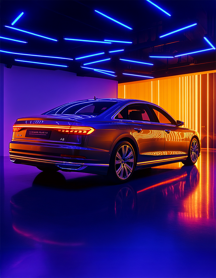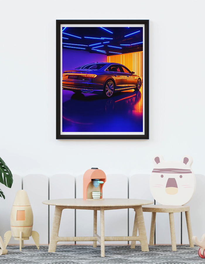This Audi A8 neon lights poster embodies luxury, sophistication, and modern aesthetics. Capturing the beauty of the Audi brand, this artwork brings the timeless elegance of the A8 to your wall. Perfect for car enthusiasts, luxury lovers, and fans of modern art, it adds a touch of high-end style to any room.