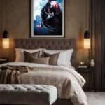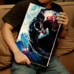Venom rises over the city in this breathtaking piece, with his dark symbiote tendrils reaching out and embodying his sinister presence. This artwork captures both the chaotic energy and destructive potential of Venom as he poses on top of the cityscape. Perfect for any Venom fan looking to make a bold statement in their space.